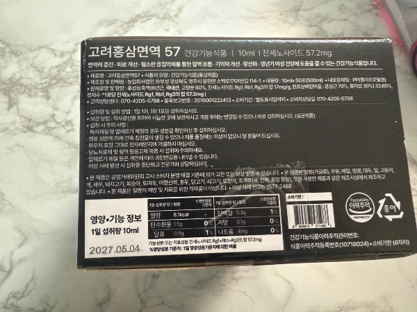 10mlx33.65%(홍삼농축액) x17mg/g=57.2mg